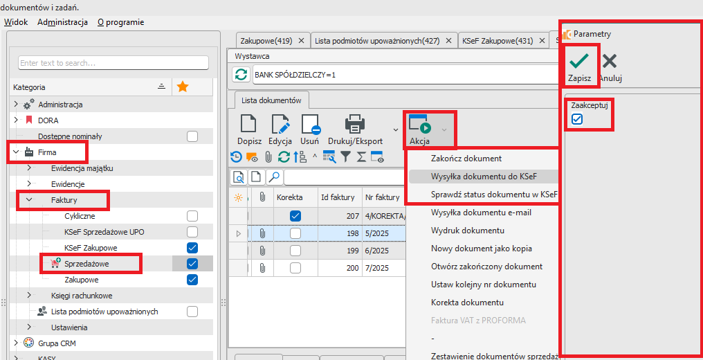 Wysyłanie faktury do KSeF : Akcja → Zakończ dokument, następnie Wysyłka dokumentu do KSeF (rys.3). Faktura wysłana do KSeF nie może zostać poprawiona, można wystawić tylko fakturę korygującą ?