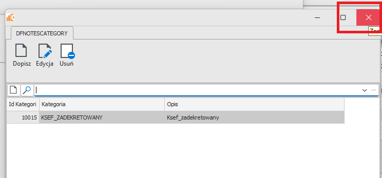 Po zapisaniu nowej definicji kategorii notatki zamykamy poszczególne okna krzyżykiem (rys.9).